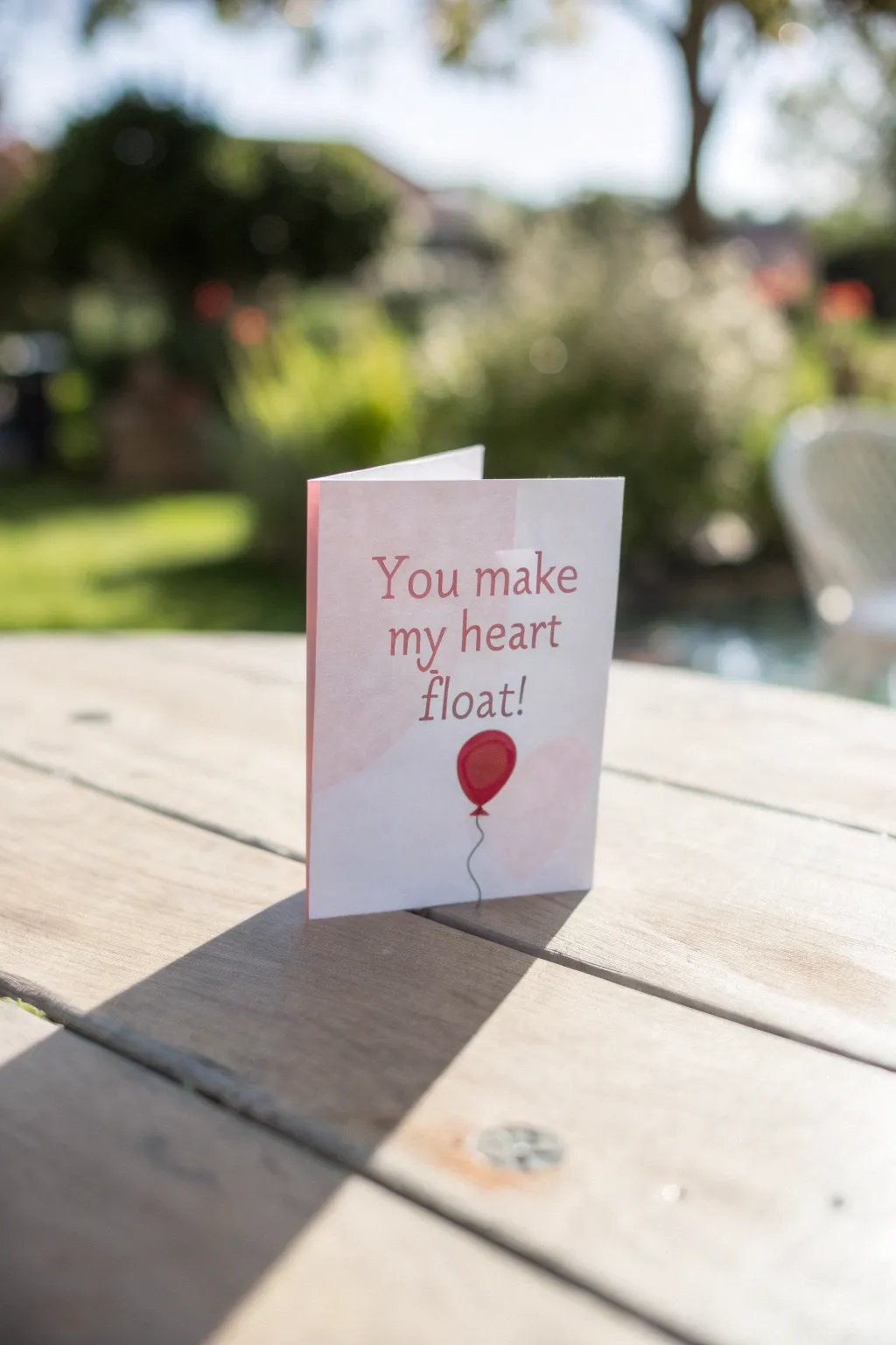 Attach small balloons to handmade cards with messages like ‘You make my heart float!’ It’s a delightful and interactive Valentine.