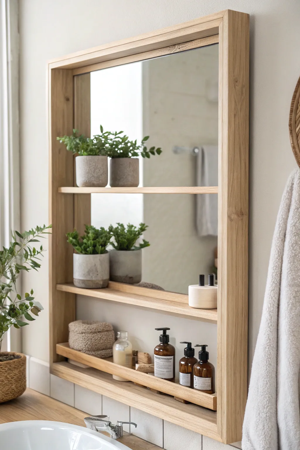 - Recessed Bathroom Mirror with Storage: Upgrade your bathroom with a recessed mirror that offers hidden storage for ultimate tidiness.