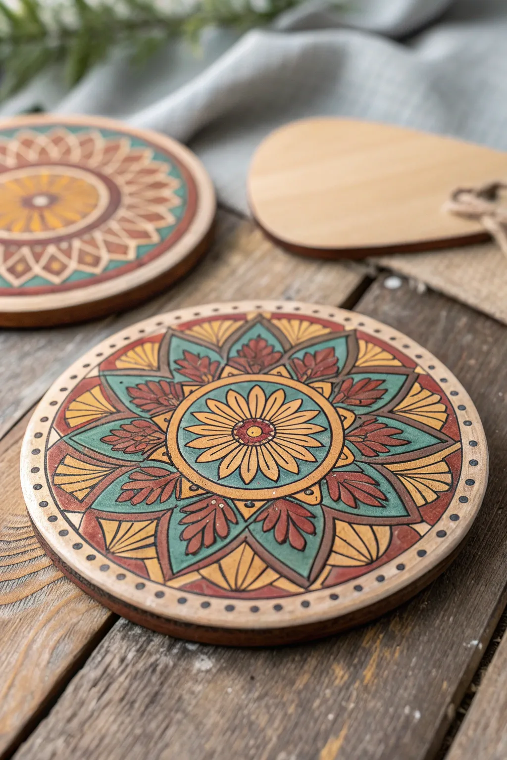 - Wooden Bohemian Car Coasters: Discover handcrafted wooden coasters that bring natural beauty and bohemian charm to your car.