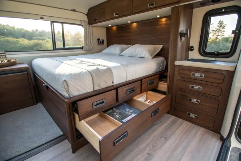 Turning a camper into a cozy home on wheels is a delightful challenge that invites creativity and resourcefulness. Whether you’re setting off for a weekend getaway or a long-term adventure, a well-designed bed is key to comfort and functionality. Wooden Framework Bed Experience the rustic charm and craftsmanship of a DIY wooden framework bed, perfect for your camper adventures. A wooden framework bed adds a rustic charm and is incredibly sturdy. I used reclaimed timber…