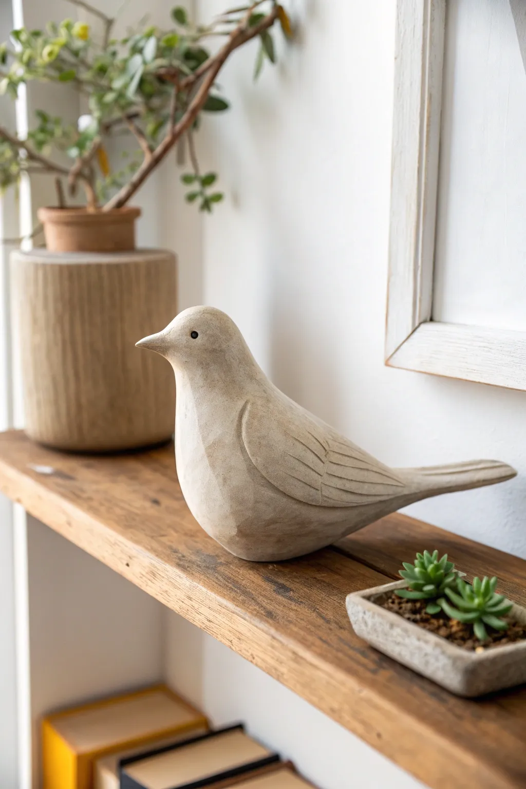 Bring a touch of nature indoors with clay bird sculptures. You can make them as lifelike or as fantastical as you wish. I have a pair perched on my bookshelf, and they add a lovely natural element to the space.