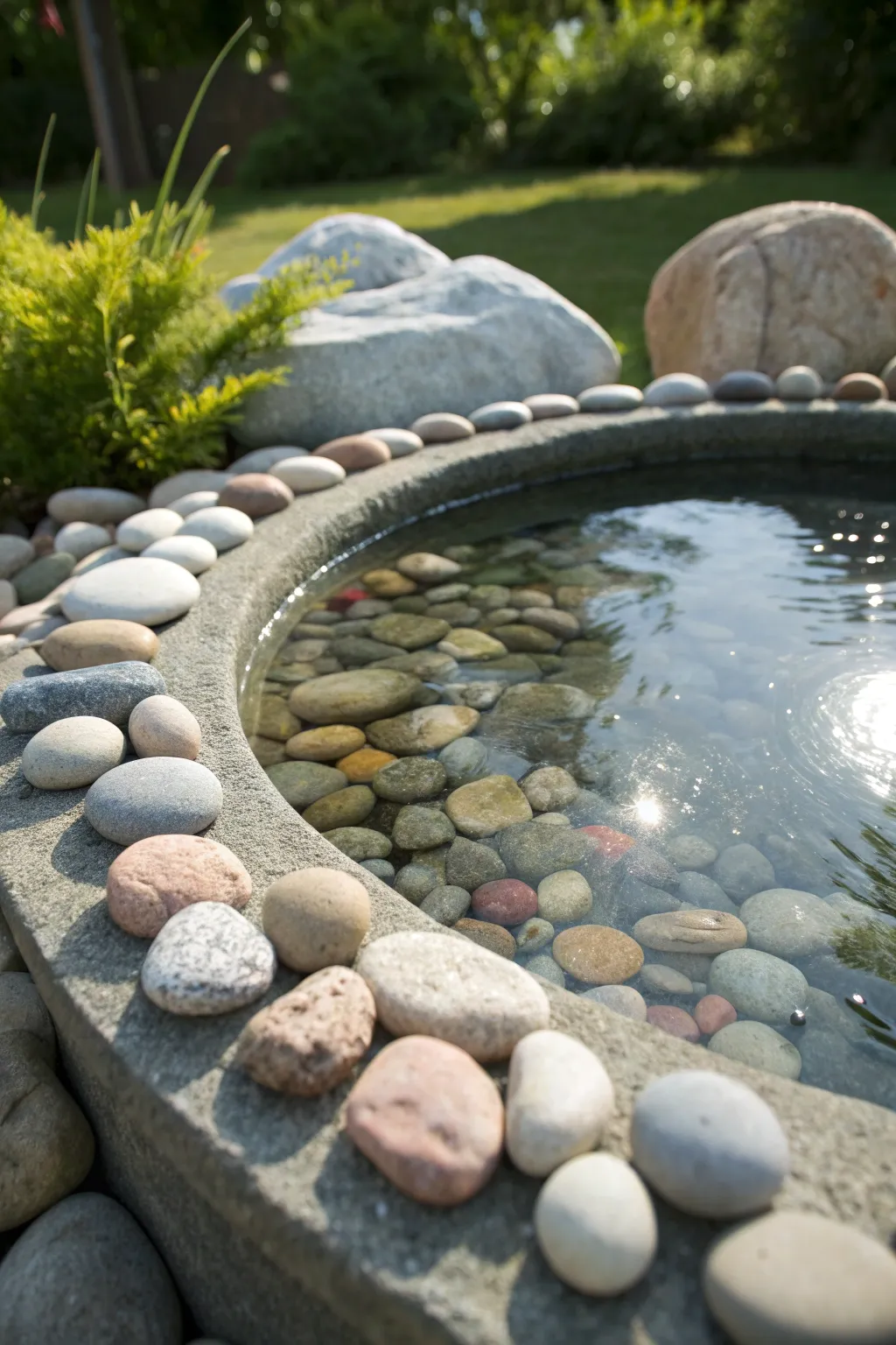 - Polished Garden Stones: Add elegance with polished garden stones, perfect for a chic border around your water feature.