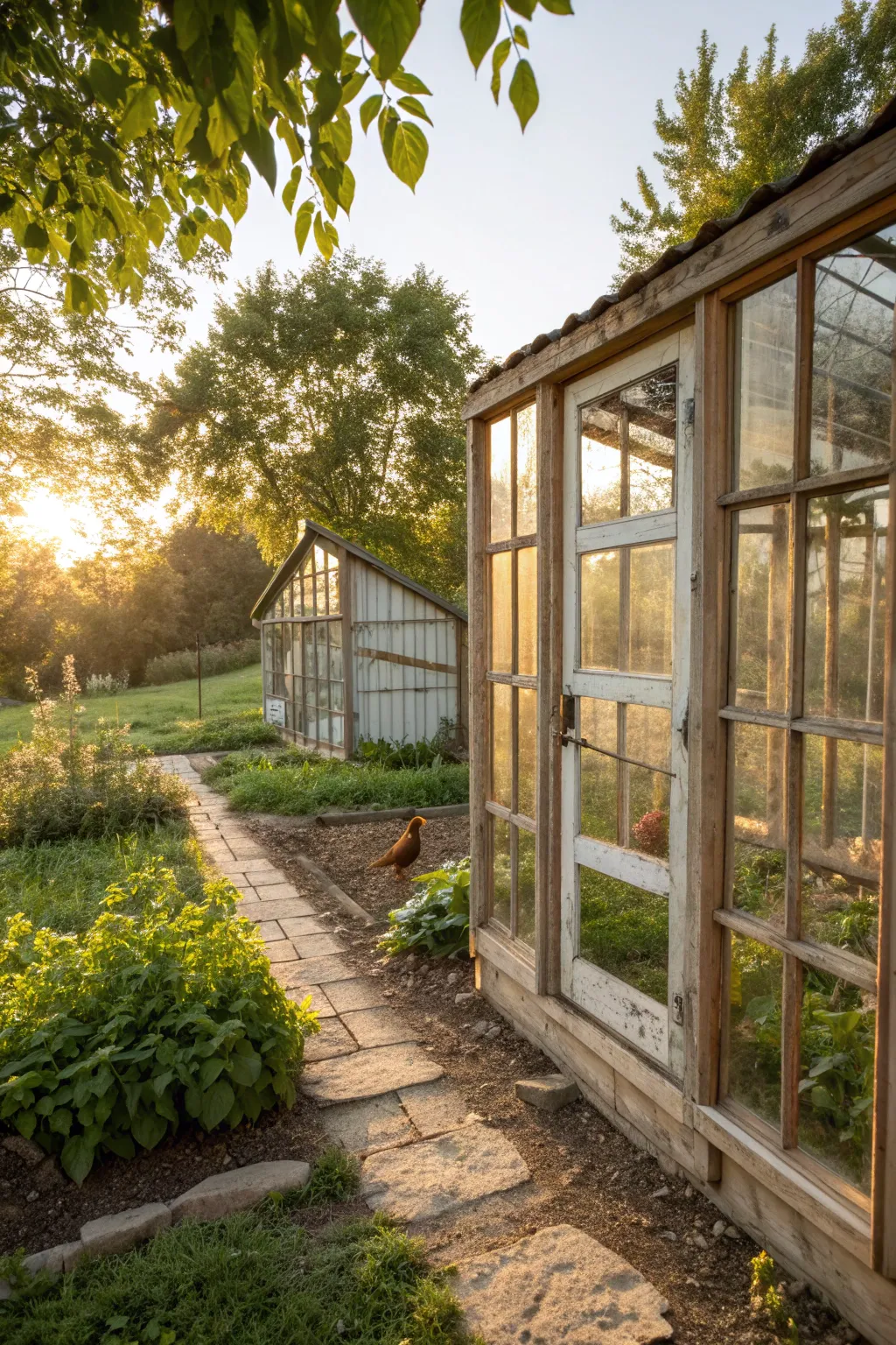 Old windows can make a stunning chicken run, letting in light and offering a vintage look. I love how this approach reduces waste while creating a charming, sunlit space for the chickens.