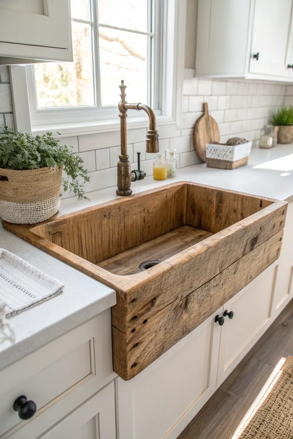 Nothing says cozy like a farmhouse sink made from reclaimed wood. I once transformed an old barn door into a stunning apron-front sink, adding warmth and nostalgia to my kitchen.