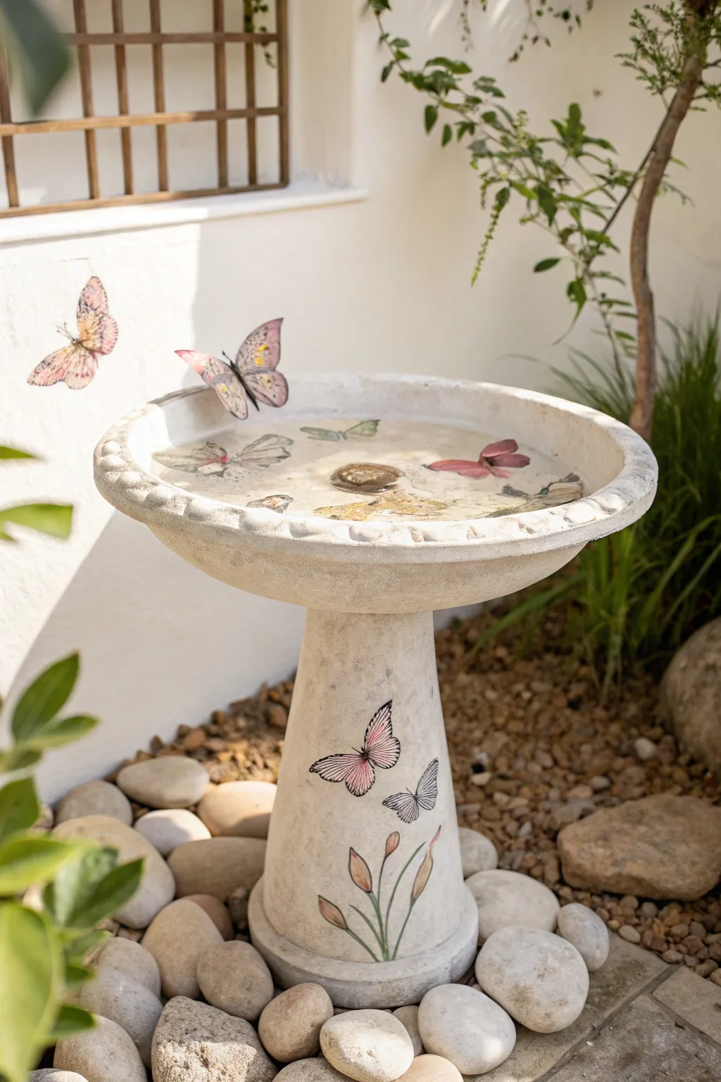 Bring your garden to life with a floral pattern painted on your bird bath. I once painted roses and daisies on mine, and it felt like the birds were enjoying a little garden party!