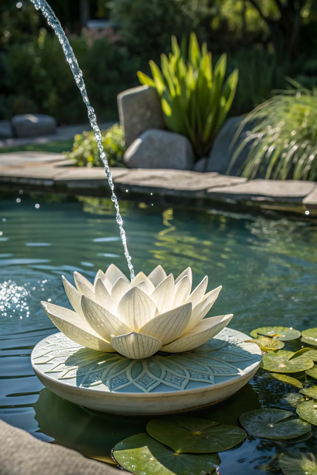Add a whimsical element to your pond with a floating water lily fountain. They’re easy to set up and create a delightful, gentle spray.