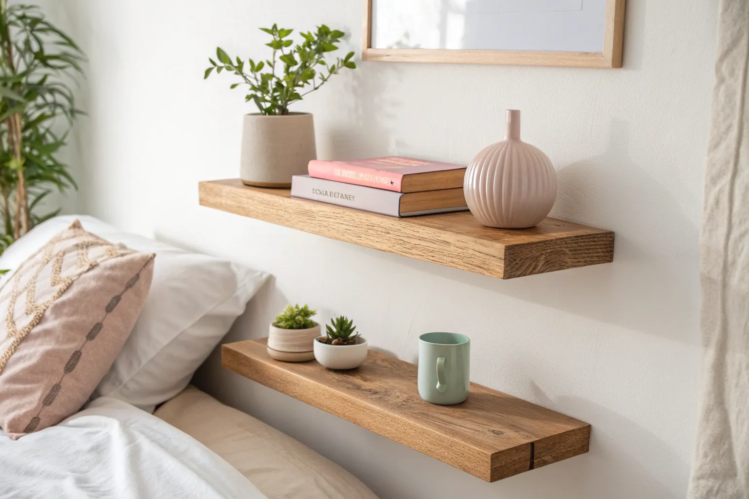 - Floating Wall Shelves: Elevate your decor with sleek, customizable floating shelves for a clutter-free look.
