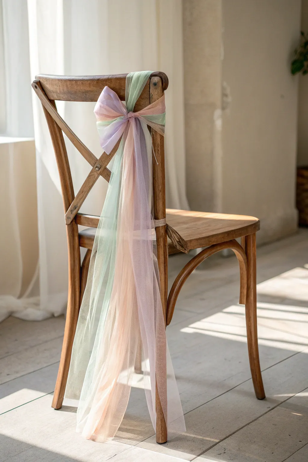 Transform any chair into a piece of art with a simple touch of tulle elegance.