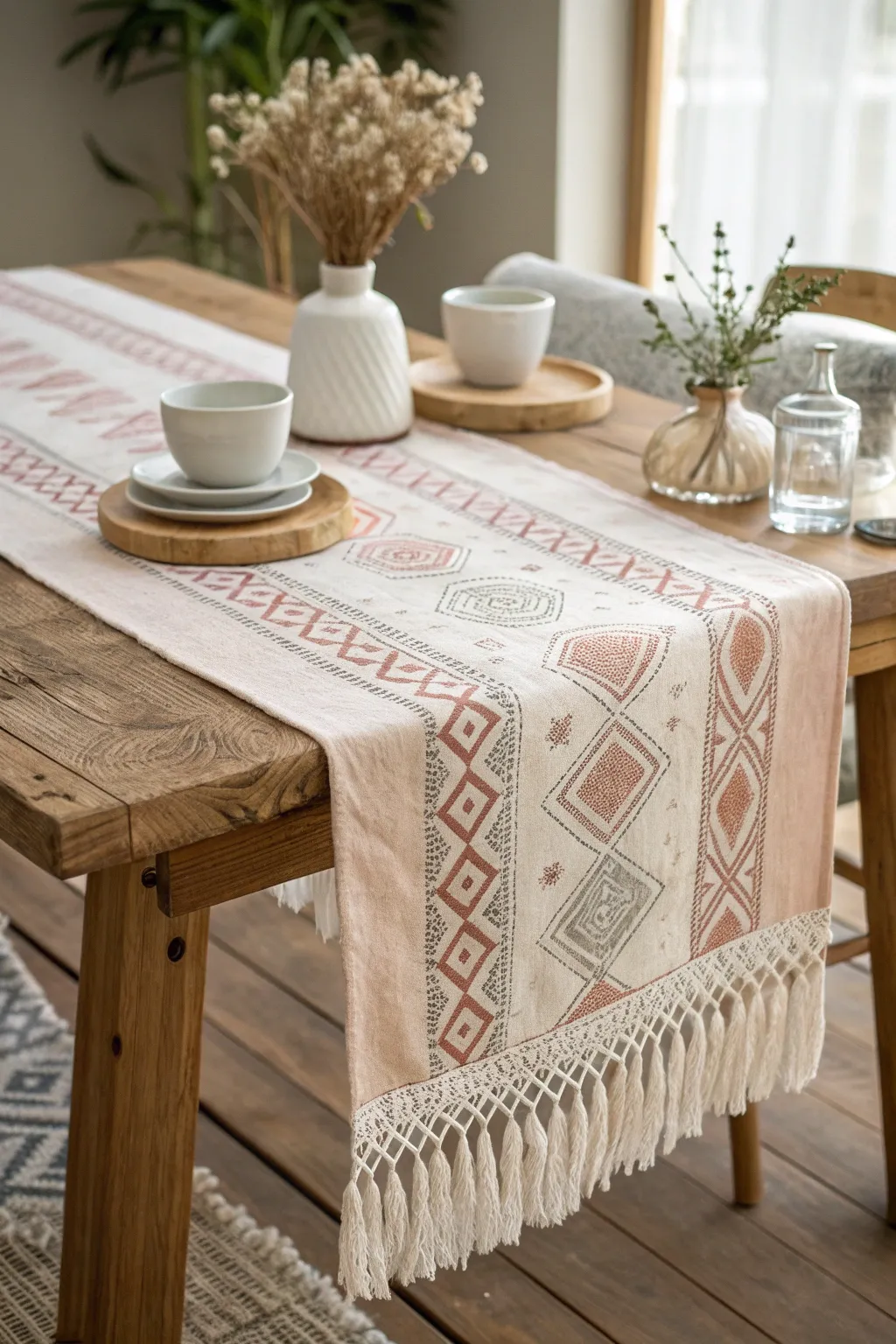 - Bohemian Style Fringe Table Runner: Add a bohemian touch to your dining room with this elegant fringe table runner.