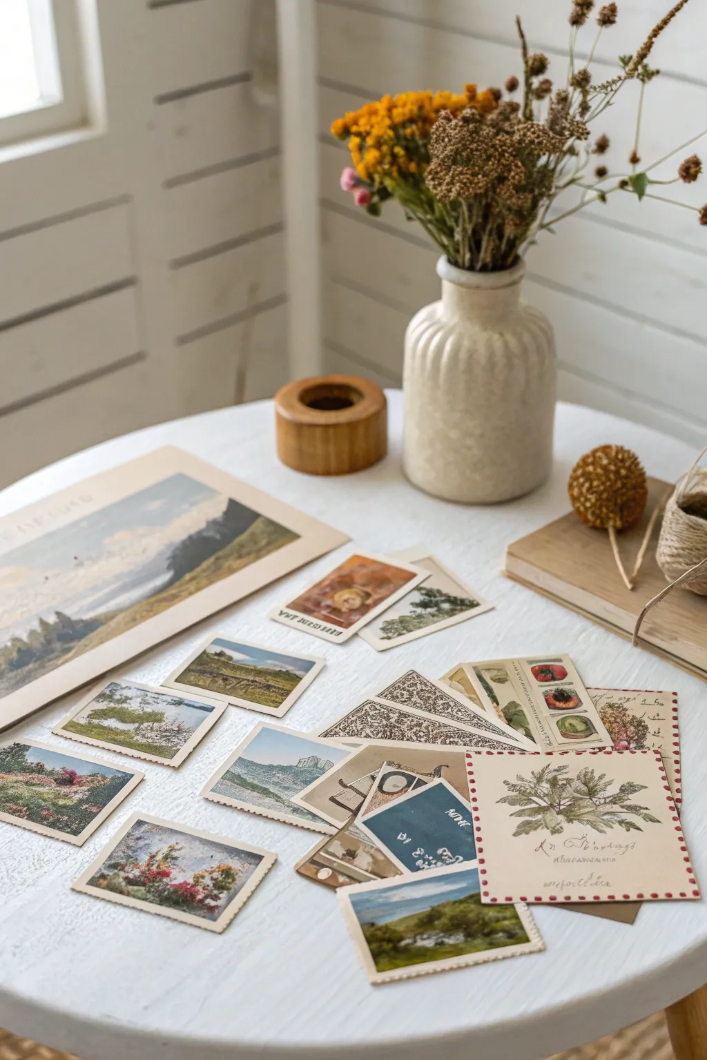 Create a collage of postcards from friends or travels. It’s a fun way to showcase connections and adventures on your pages.