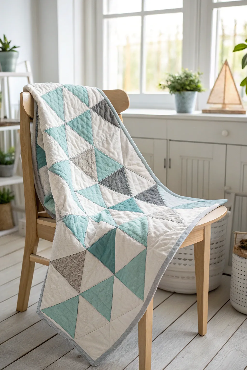 Capture the essence of a breezy day on the sea with a sailboat sail pattern. It’s a playful way to arrange your triangles, perfect for a nautical-themed room or a summer picnic.