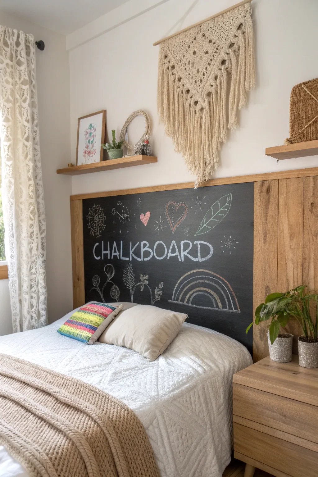 Turn your headboard into a chalkboard for a fun and interactive element. Imagine waking up to sweet messages or daily affirmations!