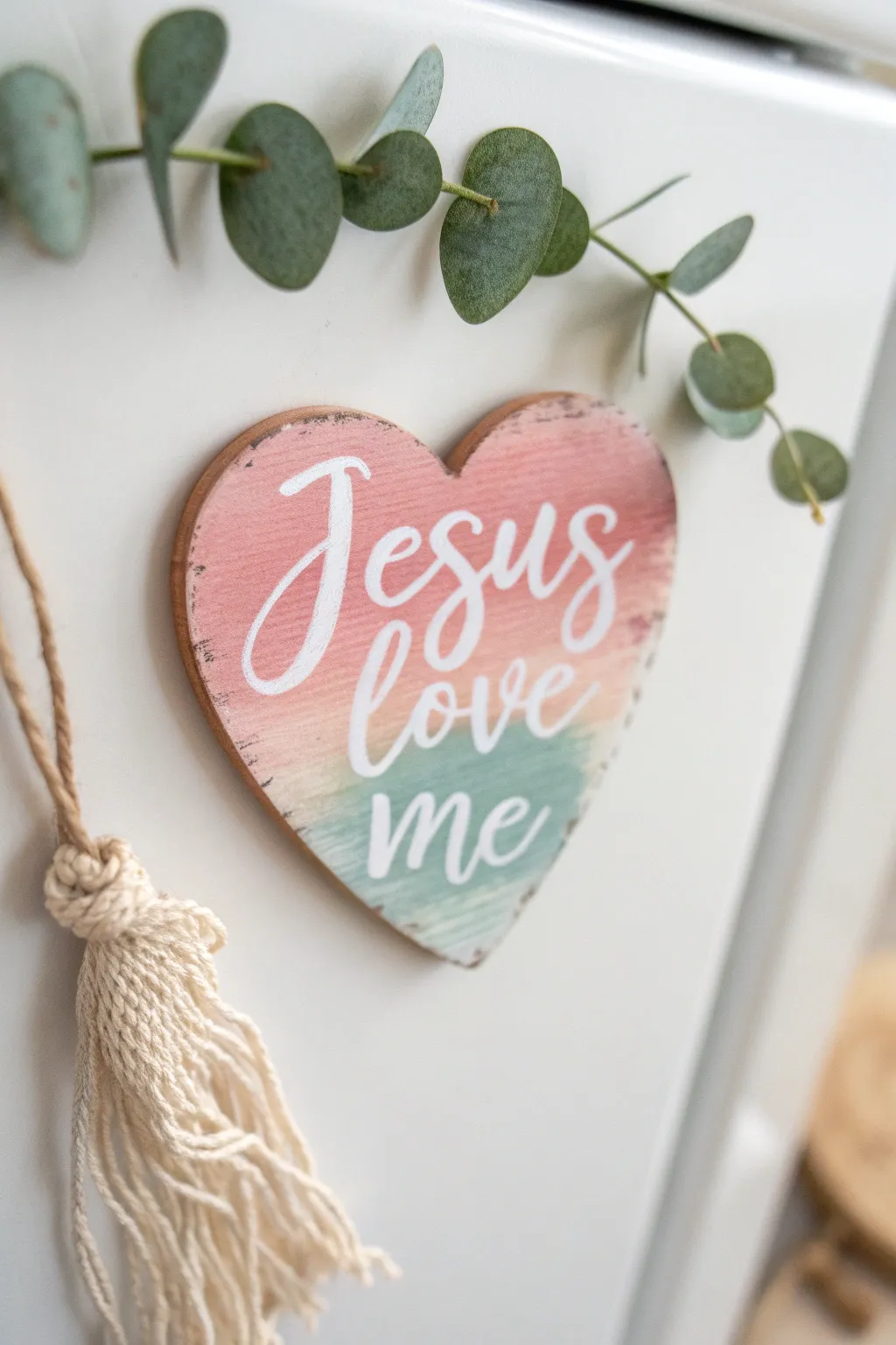 Make magnets with heart shapes and the phrase ‘Jesus Loves Me’ for your fridge. These are such a cute and constant reminder of faith every time you reach for a snack.