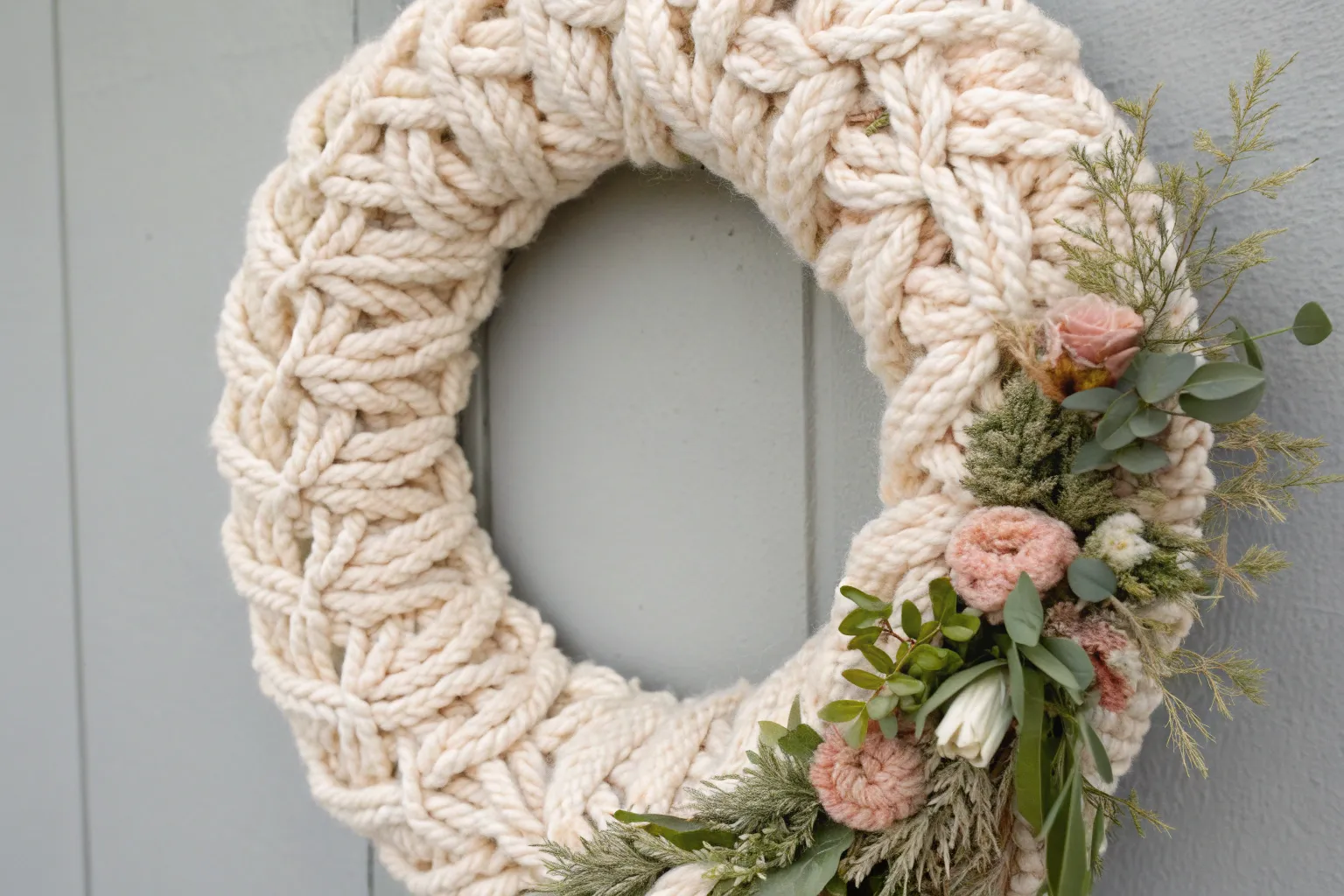 - White Loop Yarn: Craft a cozy wreath with soft white loop yarn, mimicking freshly fallen snow for winter charm.