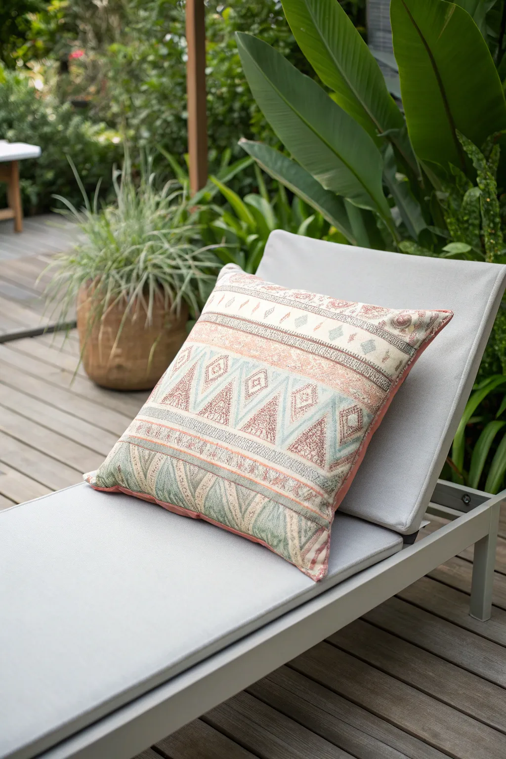 Brighten up your seating with homemade outdoor pillows. Choose weather-resistant fabric for a pop of color and comfort.