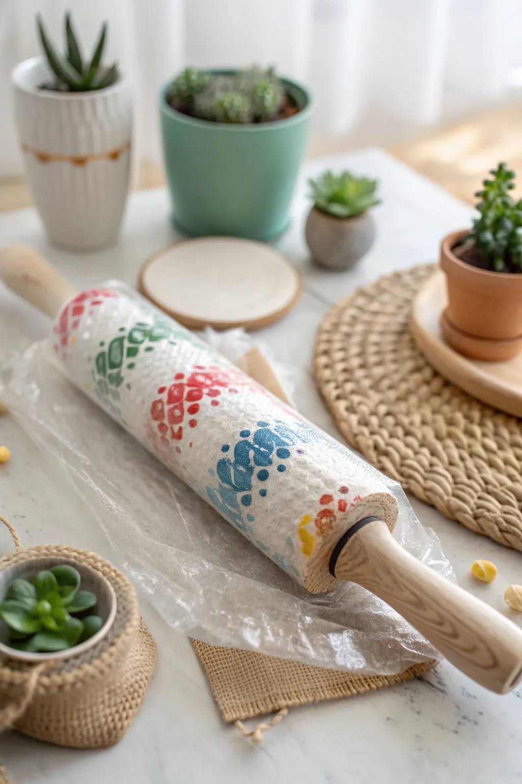 Tape some bubble wrap to a rolling pin and let your toddler create textured patterns. My tip? Keep a few sheets on hand for a quick and easy activity.