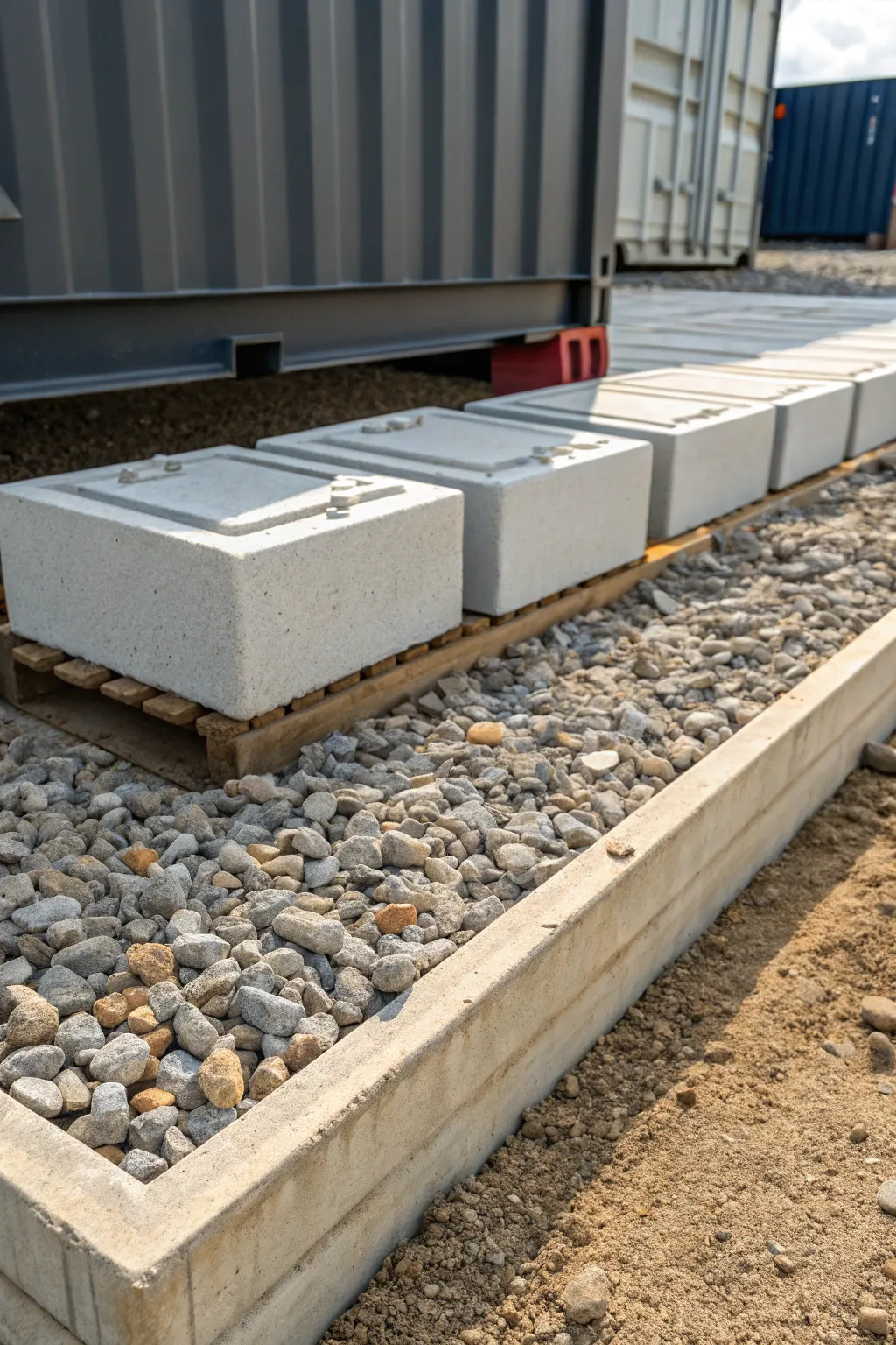 • Concrete Foundation Blocks: Secure your shipping containers with robust concrete blocks for a stable and durable foundation.