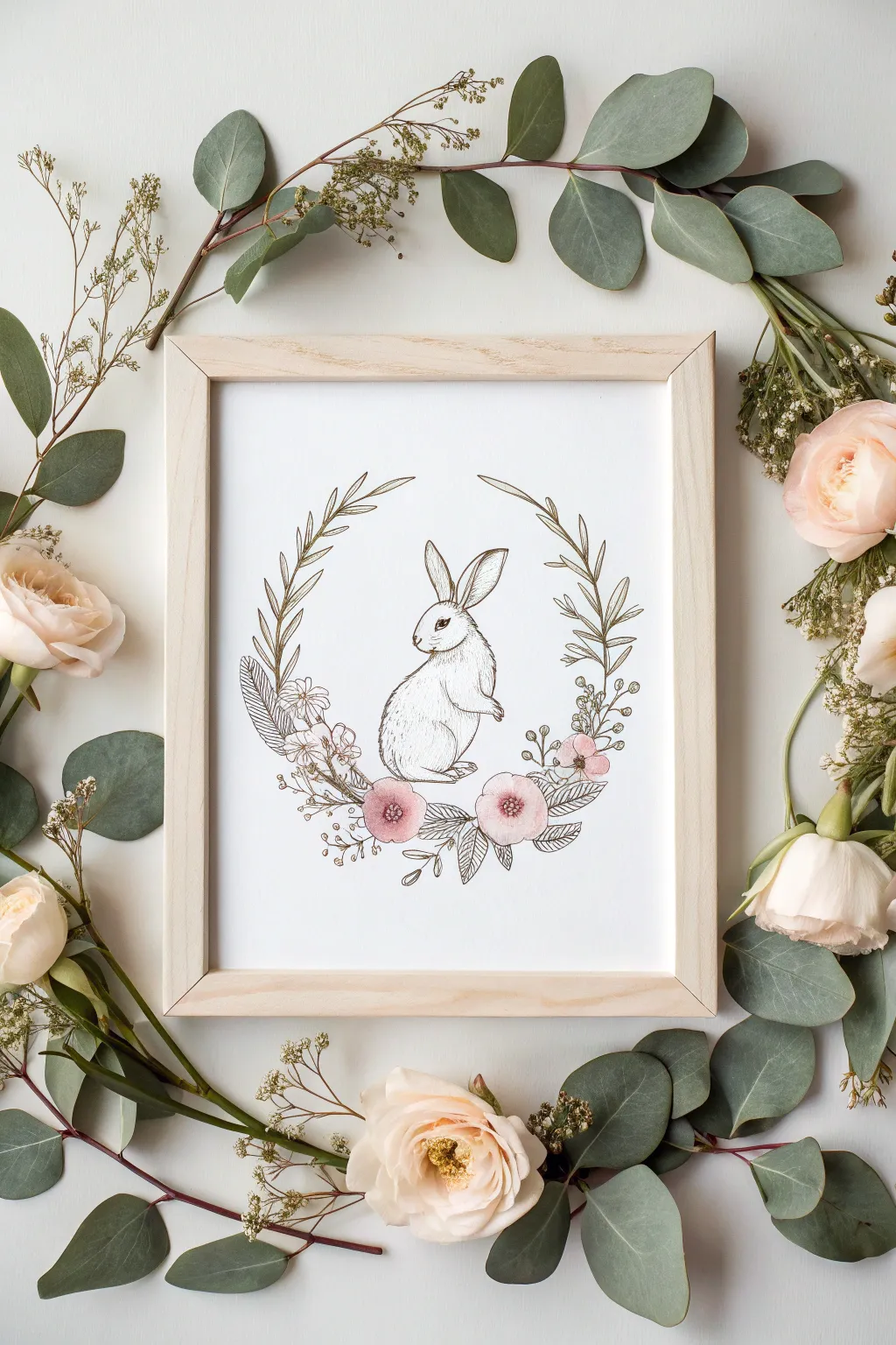 Try placing your bunny inside a wreath of leaves or flowers. It frames your drawing beautifully and adds a seasonal touch.