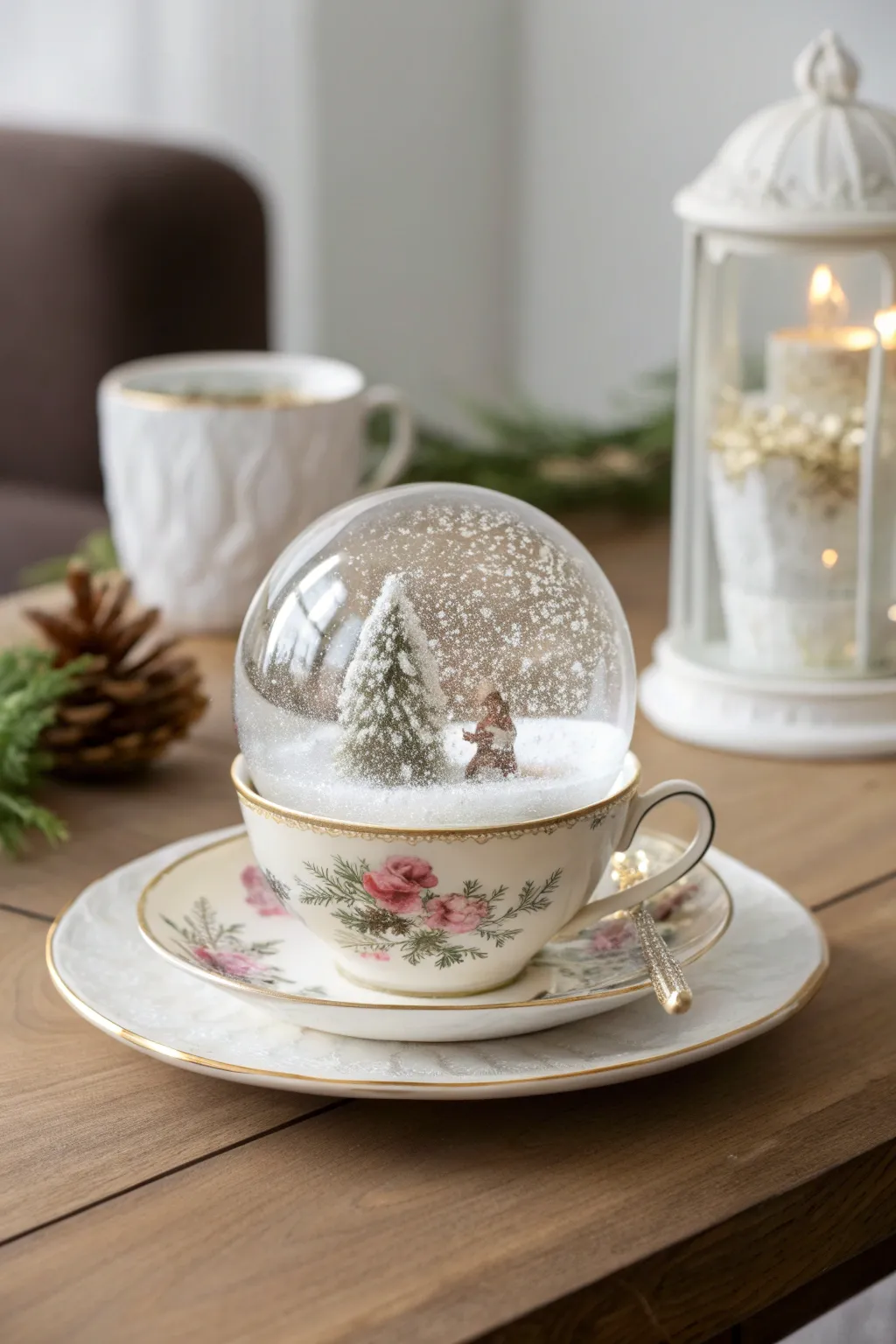 Turn a vintage teacup into a snow globe by adding a small figurine and a dash of fake snow. This unexpected twist makes a charming centerpiece for afternoon tea.