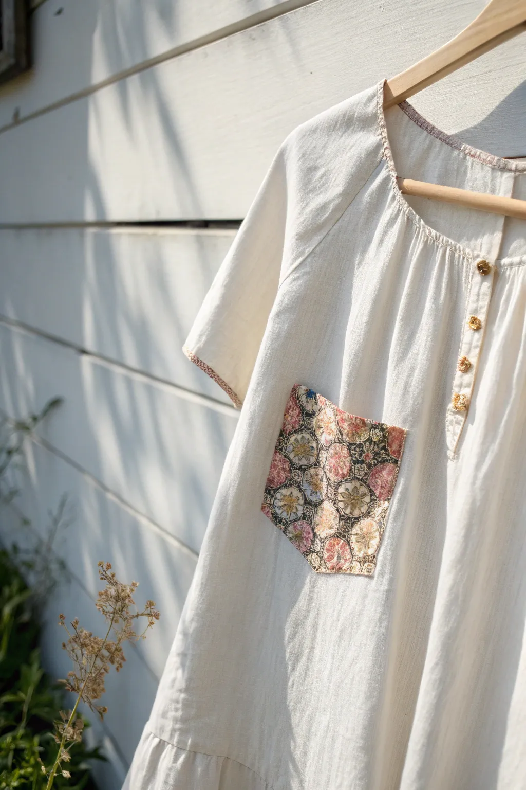 Add pockets to pocketless garments using fabric from an old shirt. I can’t count the number of times this easy fix has saved my day!