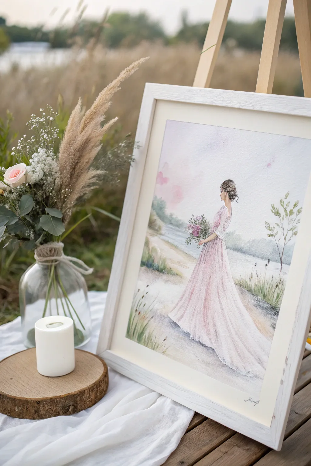 Capture the couple’s essence with a personalized portrait painting. I find this makes the perfect keepsake that truly celebrates their unique bond.