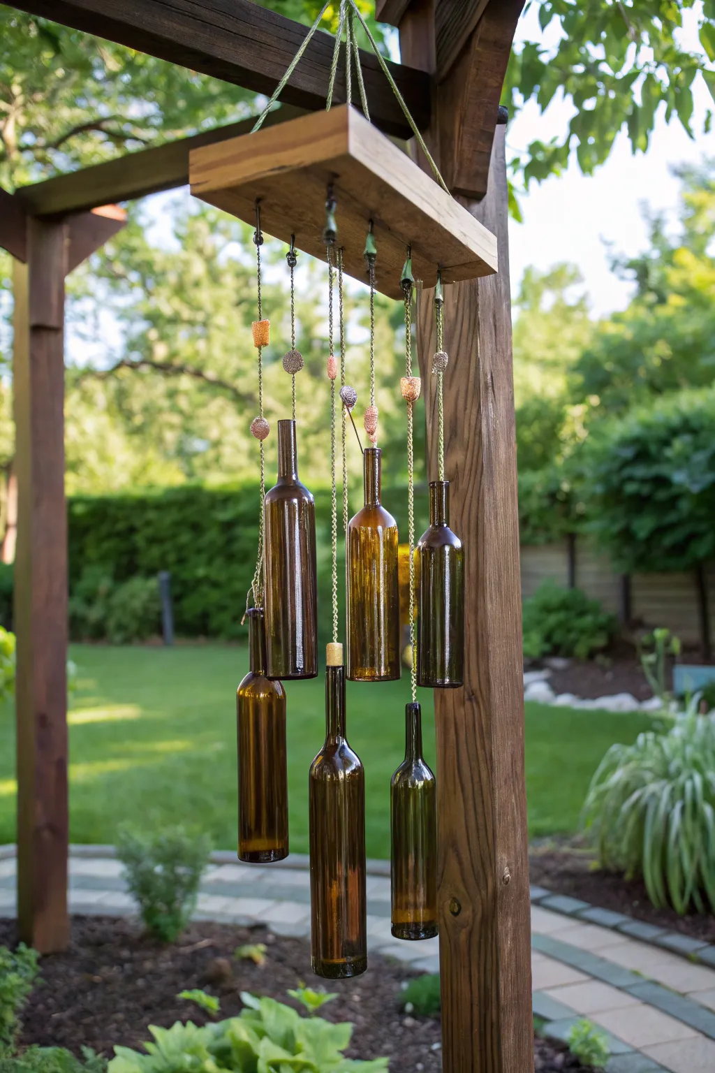Make wind chimes for a touch of music in your garden. I love how the glass gently clinks in the breeze, creating a soothing sound.